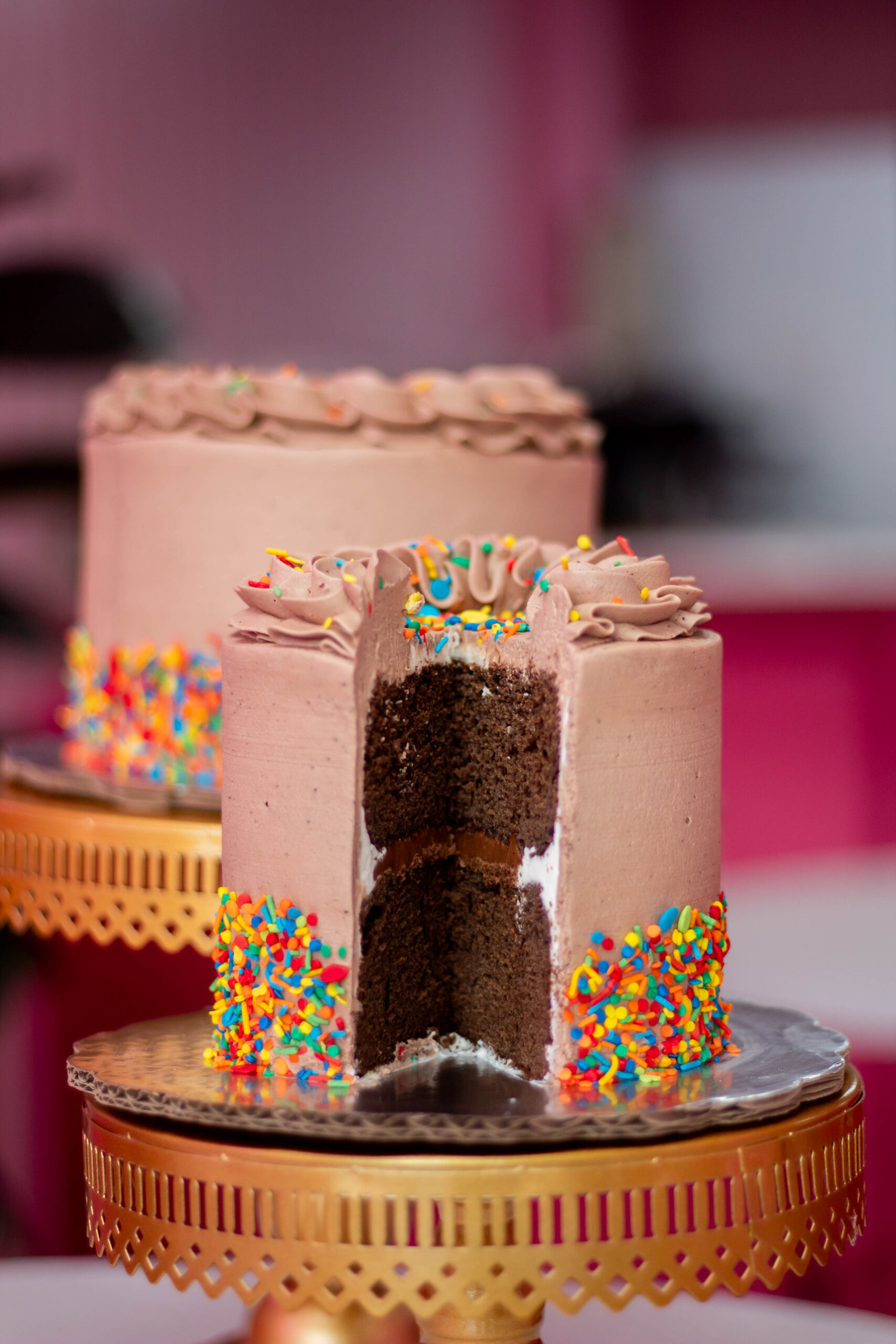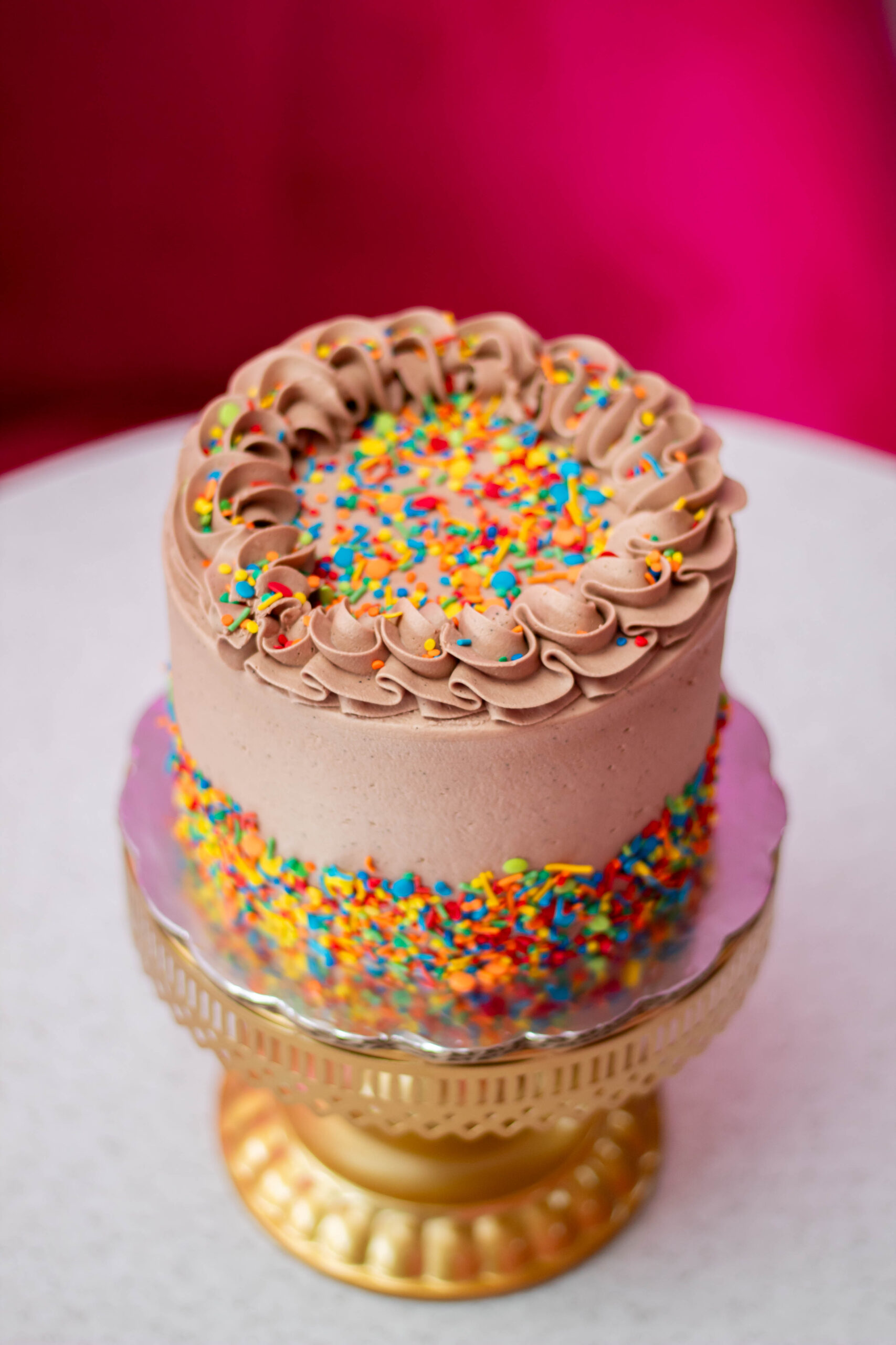 Pan de chocolate relleno de crema de avellana, con betún de chocomantequilla & sprinkles